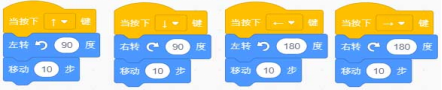 用图形化编程工具制作如图所示的简易版“穿越迷宫”小游戏。玩家用键盘上的方向键控制小球的运动:“↑”表示上移,“↓”表示下移,“←”表示左移,“→”表示右移,每次移动的距离为10。下列脚本中,能实现该功能的是( )。